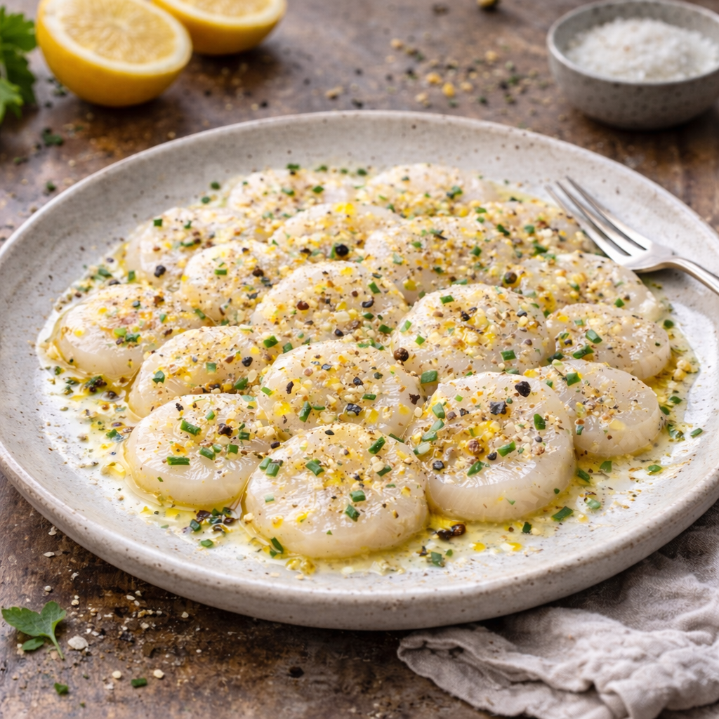 Le carpaccio de Saint-Jacques est l’une de ces recettes qui incarnent à la fois la simplicité et l’élégance. Peu d’ingrédients, très peu de cuisson – voire aucune – mais une exigence absolue sur la qualité des produits et la justesse de l’assaisonnement. Les noix de Saint-Jacques, lorsqu’elles sont ultra fraîches, offrent une chair nacrée, délicate et légèrement sucrée, idéale pour une préparation crue.