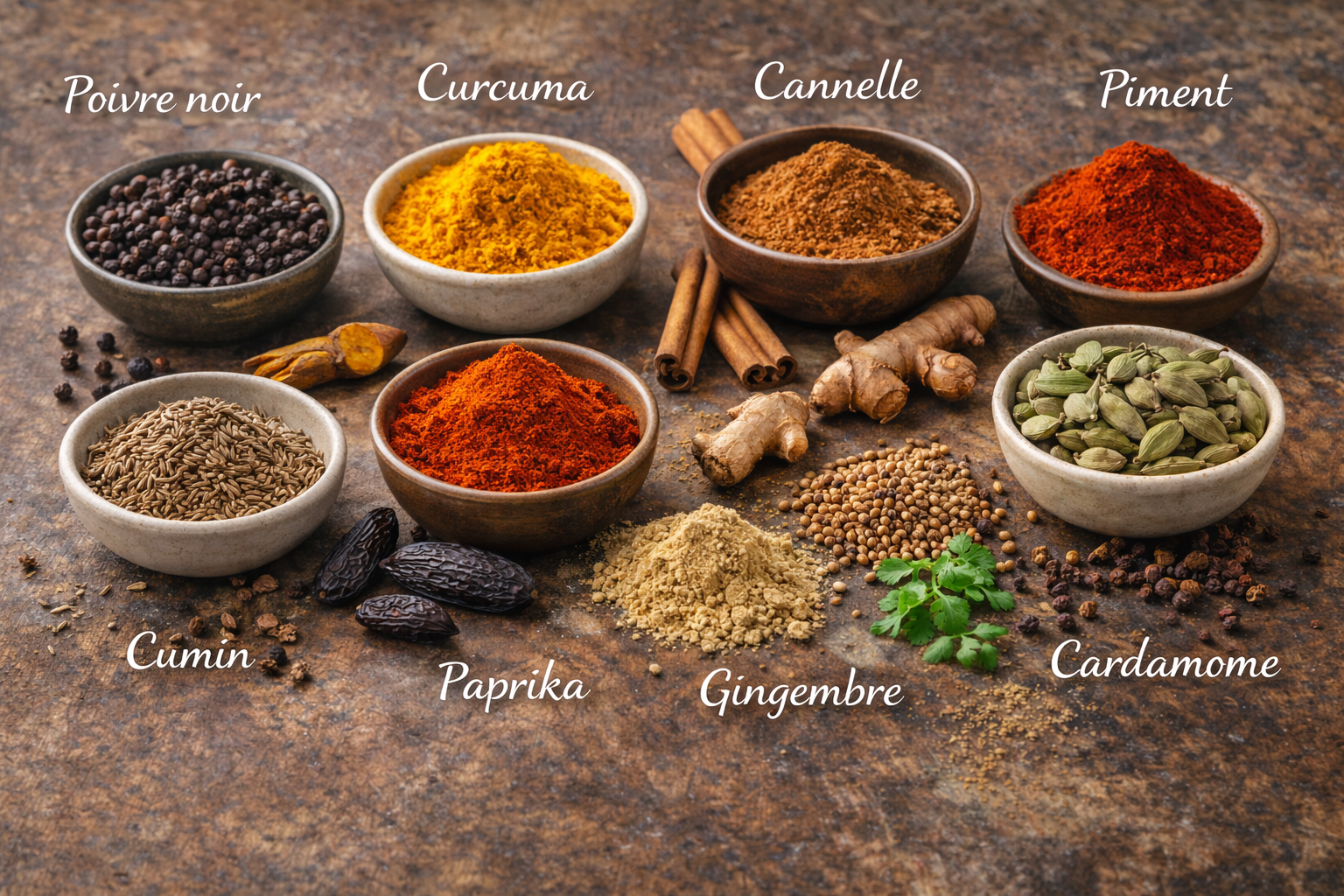 Les épices ont accompagné l’histoire culinaire de l’humanité depuis des millénaires. Utilisées en cuisine, en médecine traditionnelle ou encore dans les rituels culturels, elles sont l’âme de nombreuses préparations à travers le monde. Parmi les centaines d’épices existantes, certaines se distinguent par leur polyvalence, leur richesse aromatique, leur popularité ou encore leurs vertus nutritionnelles. Ce sont ces épices incontournables qui constituent la base d’une cuisine pleine de goût, de parfums et de bien-être. Découvrons-les ensemble.